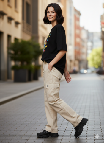 Oversized Casual Black Cotton Tee